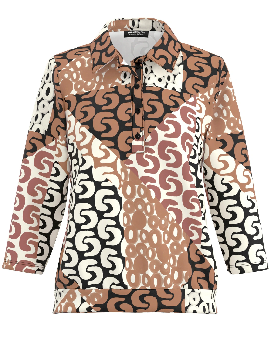 De kleding van Frank Walder staat bekend om de perfecte pasvormen. Elegante mouw- en roklengtes, comfortabele taillebanden. Alles zonder in te leveren op stijl en vrouwelijkheid. De comfortabele zachte, vaak elastische materialen verhogen het draagcomfort. Moderne prints, fijne glittergaren, mooie siersteentjes, bijzondere knopen, luxe materiaalmixen. De details maken de items van Frank Walder uniek.