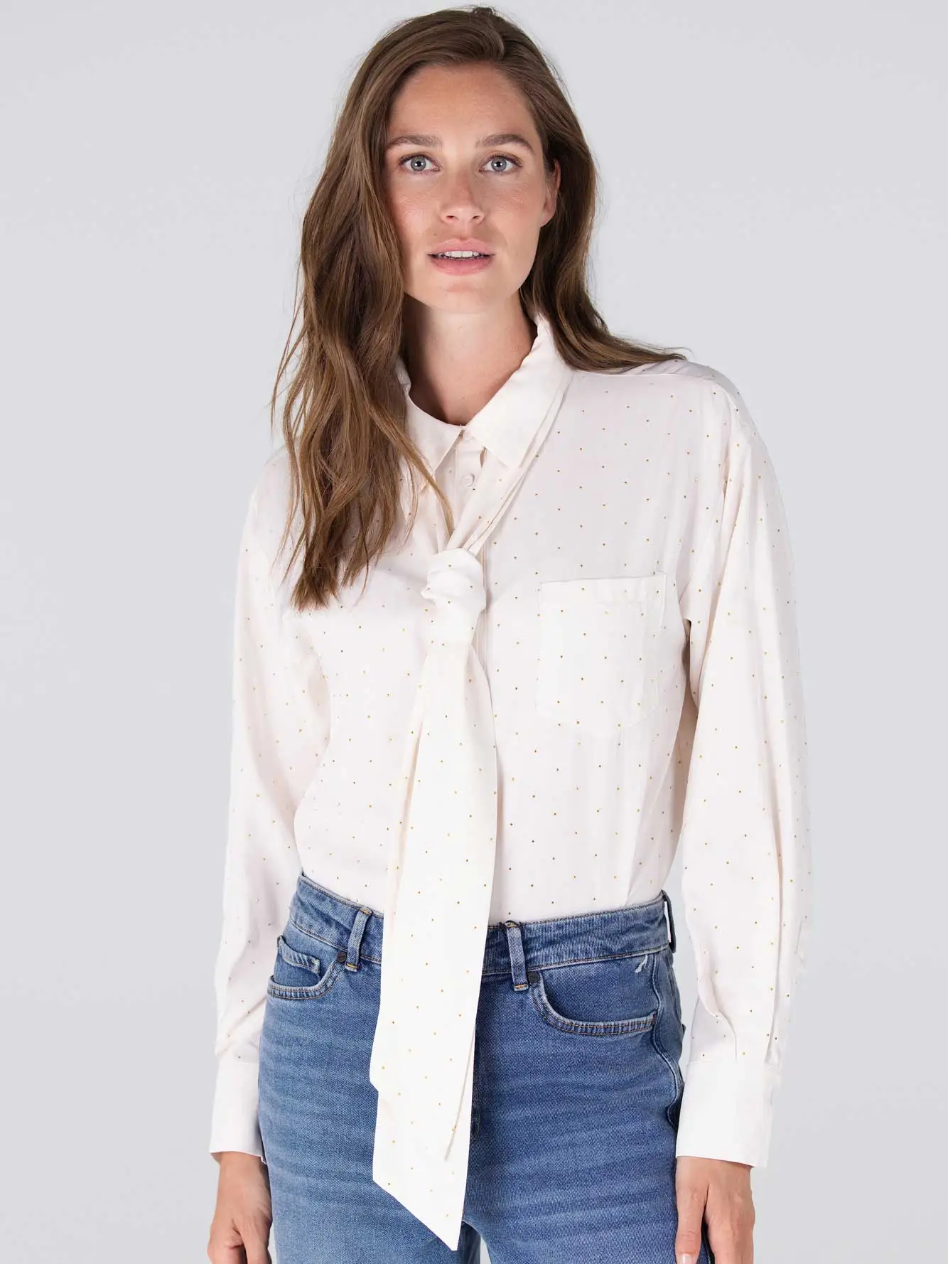 Je mag de blouse wassen in de wasmachine. De blouse mag niet in de droger. Je mag de blouse wel strijken. Chemische reiniging is toegestaan. Zie het waslabel voor verdere wasinstructies.