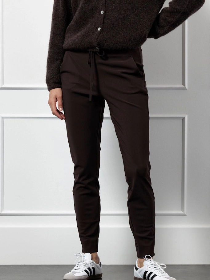 Studio Anneloes maakt in haar collecties veel gebruik van de comfortabele Travel-stretchstof. Ongeveer 90% van de collectie bestaat uit dit heerlijke, comfortabele materiaal. Zo zijn bijvoorbeeld broeken, tops en blazers gemaakt van deze fijne Travel-kwaliteit. De stof is verkrijgbaar in verschillende gewichten, bijvoorbeeld lekker licht voor warme zomerdagen en zwaarder voor gure wintermaanden. Naast comfort staat de Travel-kwaliteit ook bekend om andere, unieke eigenschappen zoals dat de stof ademend, duurzaam, snel drogend, extra elastisch en vorm- slijtvast is. Door easy care eigenschappen is de stof ook nog eens makkelijk wasbaar en kreukvrij. De stof kreukt echt nooit!