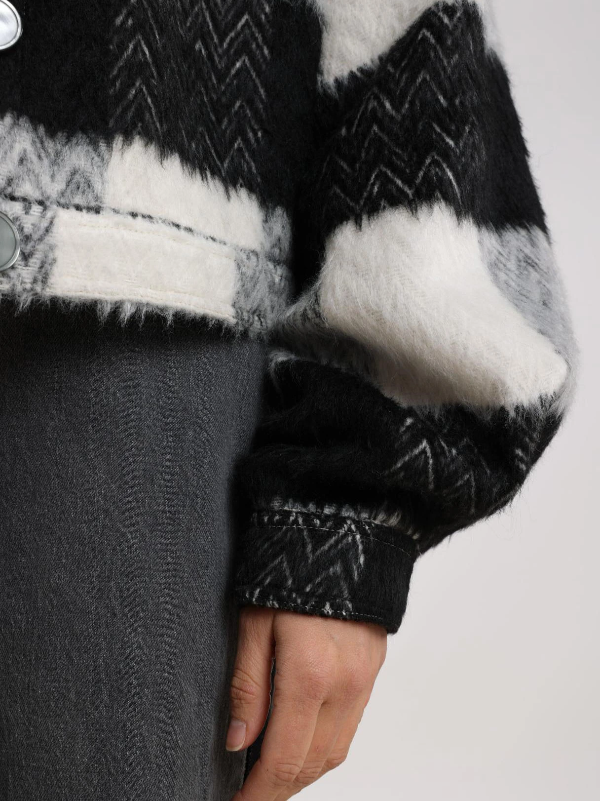 Buitenstof: 80% polyester, 10% wol, 10% andere materialen. Voering: 100% polyester.